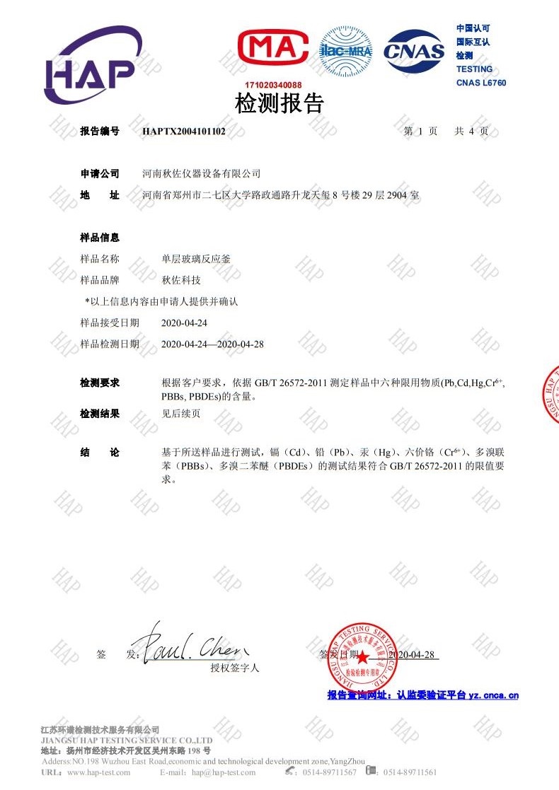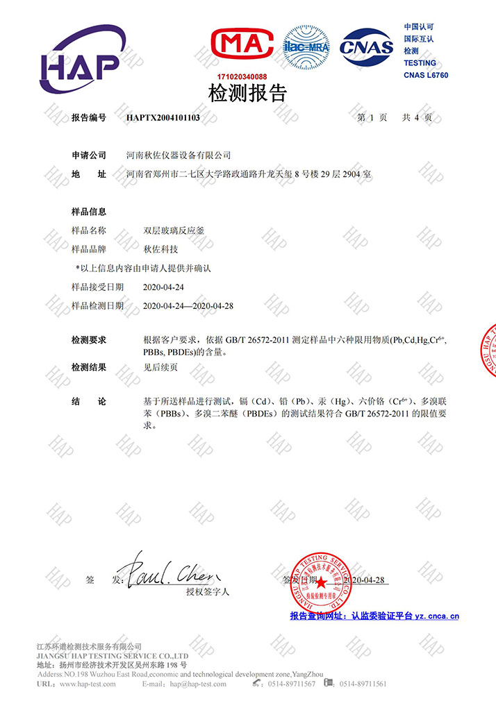 單層玻璃反應(yīng)釜質(zhì)檢報(bào)告