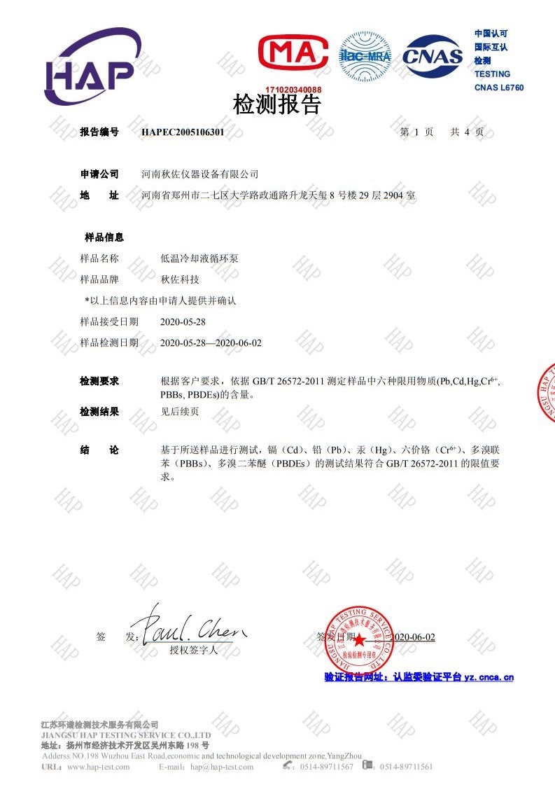 高溫循環(huán)油浴質(zhì)檢報(bào)告