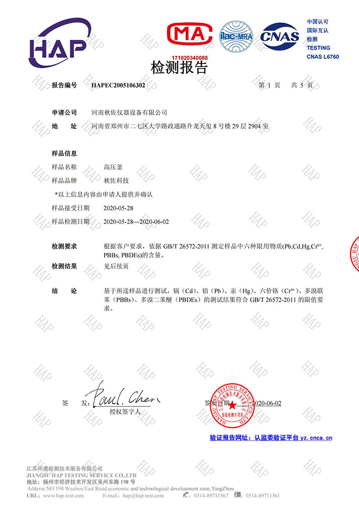 水熱合成反應(yīng)釜質(zhì)檢報(bào)告