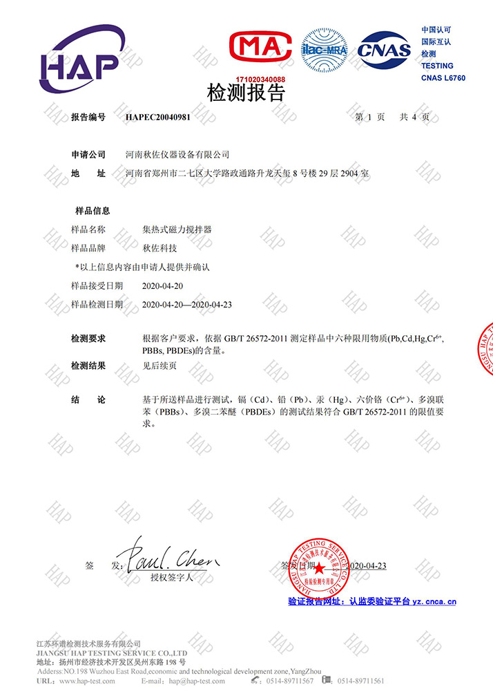 集熱式磁力攪拌器質(zhì)檢報(bào)告