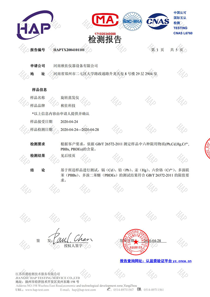 旋轉(zhuǎn)蒸發(fā)儀質(zhì)檢報(bào)告