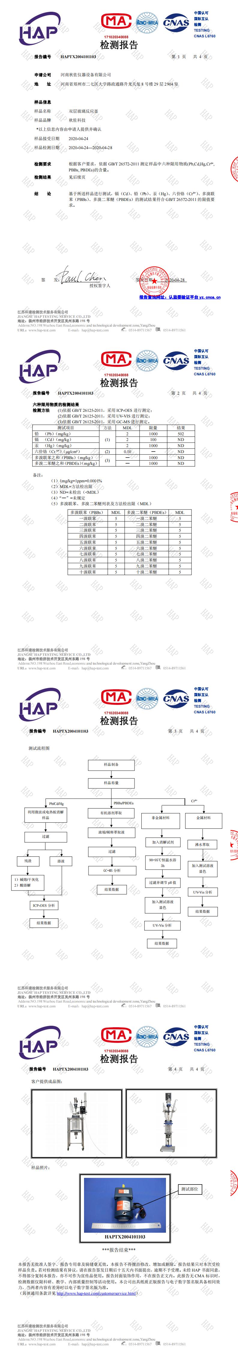 雙層玻璃反應(yīng)釜質(zhì)檢報告