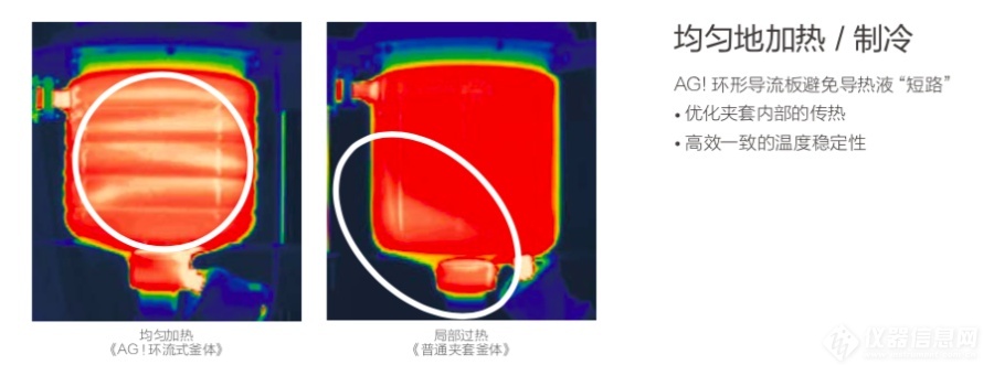 從熱力圖中我們明顯能夠看出,AG!獨(dú)有的環(huán)形導(dǎo)流板技術(shù),能夠顯著提升加熱效率,節(jié)省控溫過(guò)程的時(shí)間。